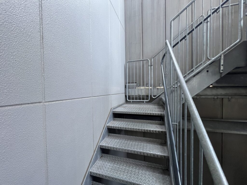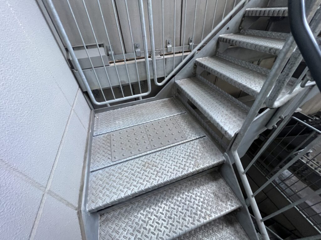 螺旋階段内側には低めの手すりがあり、両サイドには手すりとして使える高めの柵があります。