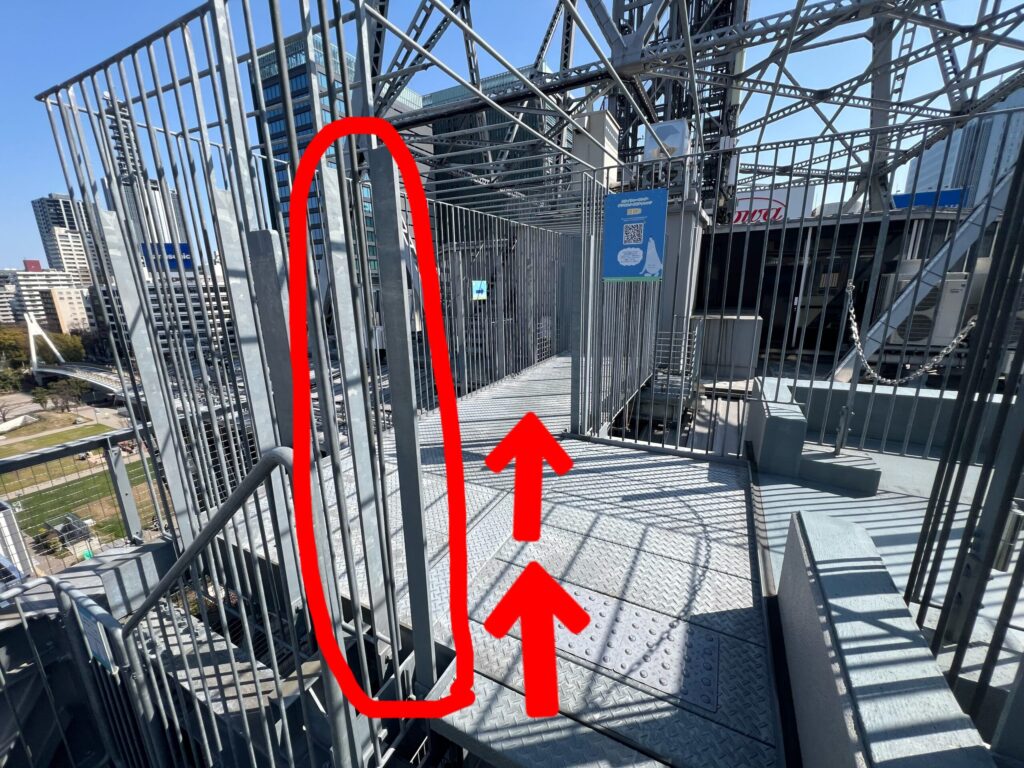 途中に2ヵ所ある電飾ゾーン(ミライタワー南側にある階段区間)は、右側の手すりのスペースが狭いので要注意。