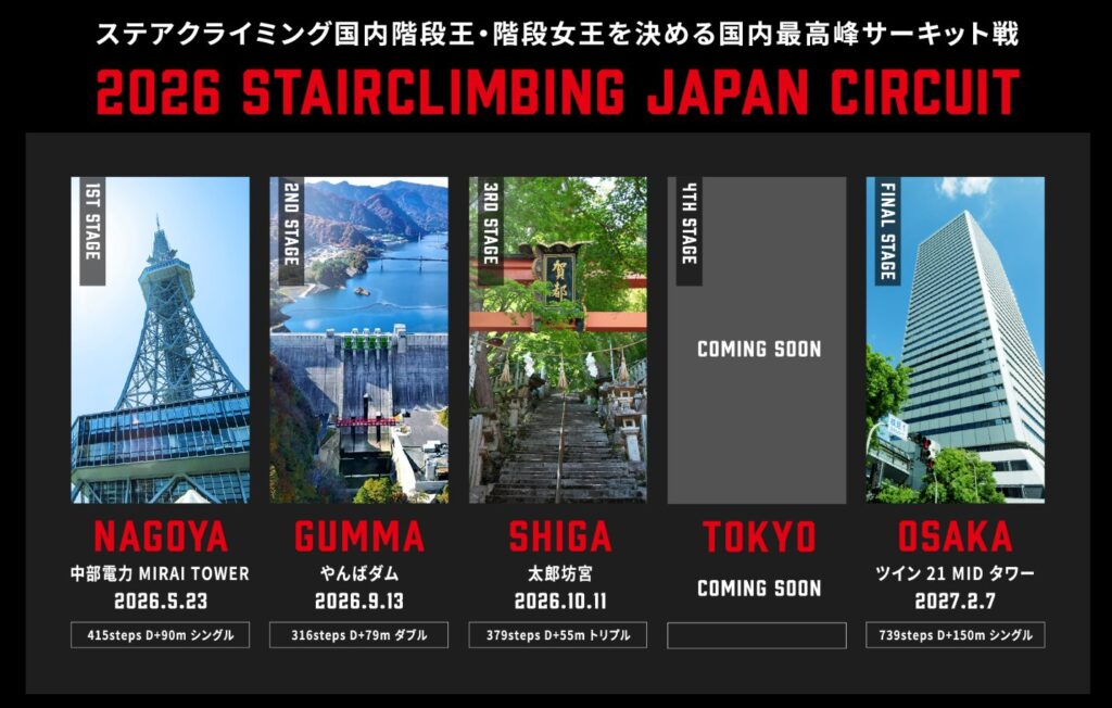出典:ATHLETE – STAIRCLIMBING JAPAN CIRCUIT|SJC – ステアクライミング(階段垂直マラソン)の国内シリーズ戦
